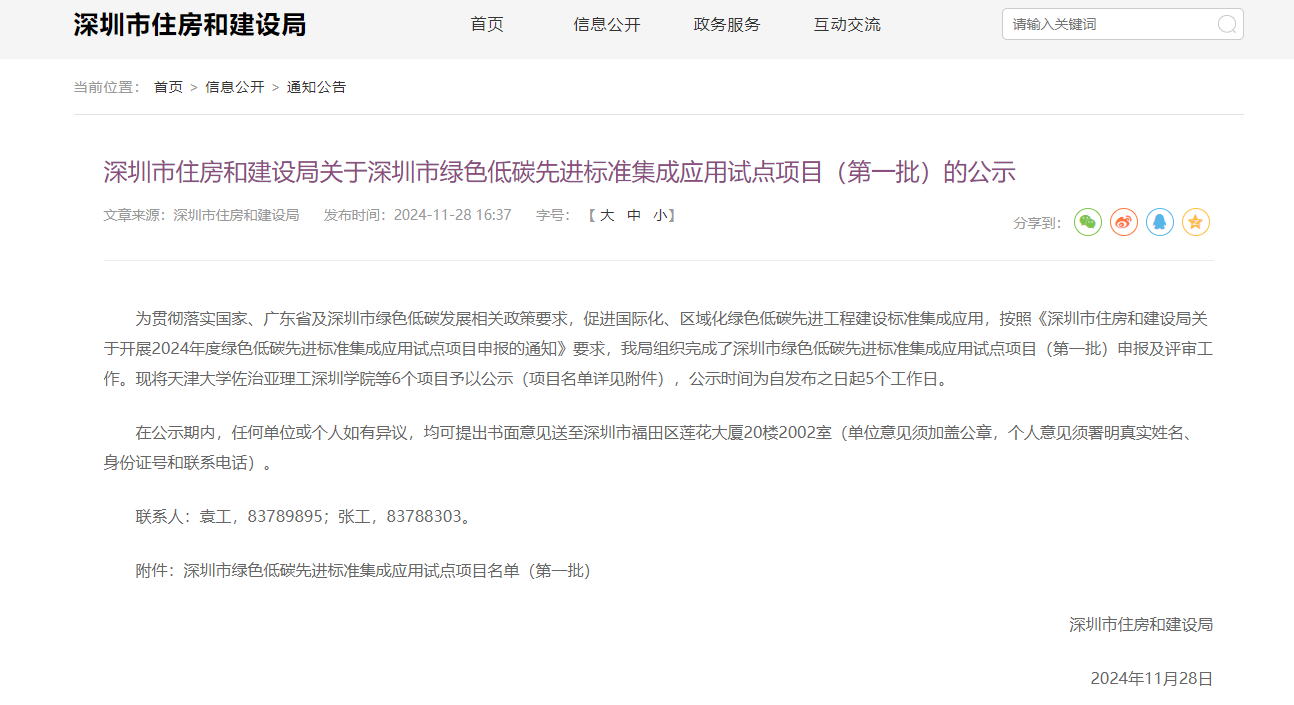 近日,深圳市住房和建设局发布了深圳市绿色低碳先进标准集成应用试点项目(第一批)公示,中国建研院深圳分米乐官方版·(中国)官方网站两个项目成功入选,在本次公示的六个试点项目中数量处于领先地位,充分体现了中国建研院深圳分米乐官方版·(中国)官方网站在大湾区绿色低碳发展领域的品牌影响力。