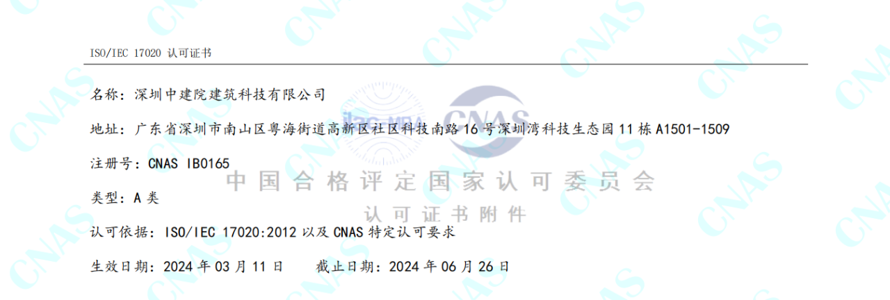 深圳中建院综合检测实验室建设工作进展顺利,建筑节能、绿色建筑新增项目已取得CNAS 、CMA资质扩项证书,幕墙实验室已完成设备主体安装工作,继续进行资质能力建设及部分新增项目扩项审核工作。