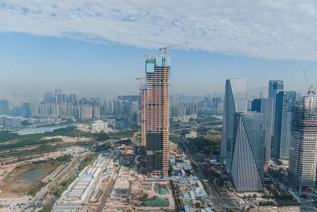 目前,前海国际枢纽中心项目正稳步建设中,枢纽上盖的T2公寓主体结构已施工至59层,T4办公楼主体结构已封顶,预计2024年即将入市。