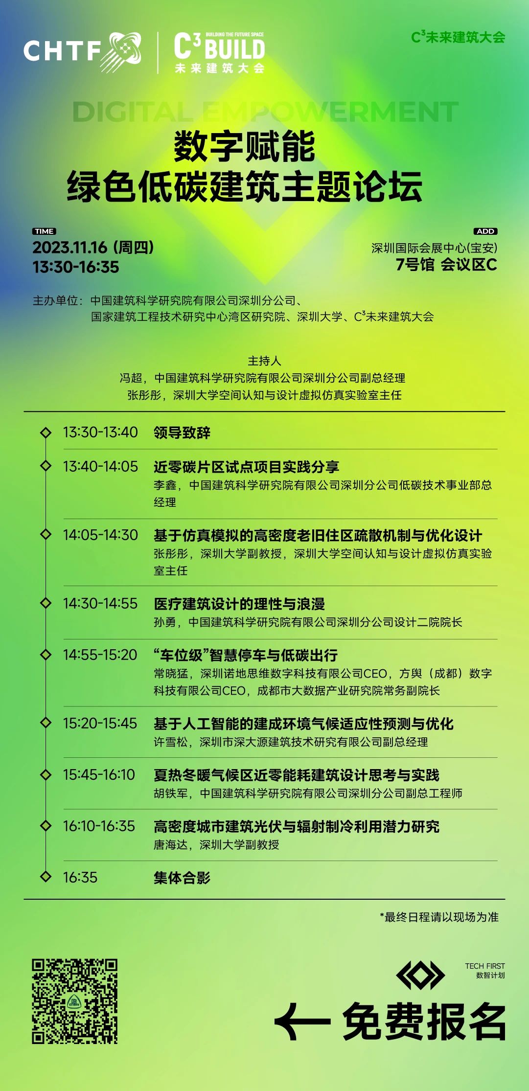 距离高交会-C³未来建筑大会-数字赋能绿色低碳建筑主题论坛召开进入倒计时阶段。本次论坛邀请了7位业内技术大咖做现场演讲,精彩内容先来一睹为快!