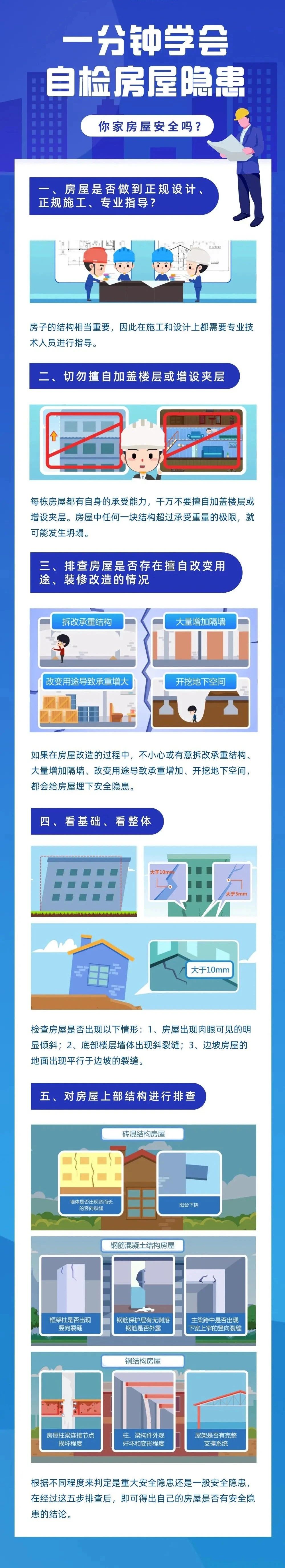 房屋是日常生产生活的重要场所,房屋安全与大家生活品质息息相关。房屋像人一样,会经历“生、老、病、死”,从出生到死亡,有病要治病,没病要体检。平时会出现一些“病害”,如果没有及时发现、早日医治,慢慢会演变成倾斜、折断、坍塌等“重症”乃至“死亡”。关于房屋安全,这些知识您要及早了解。