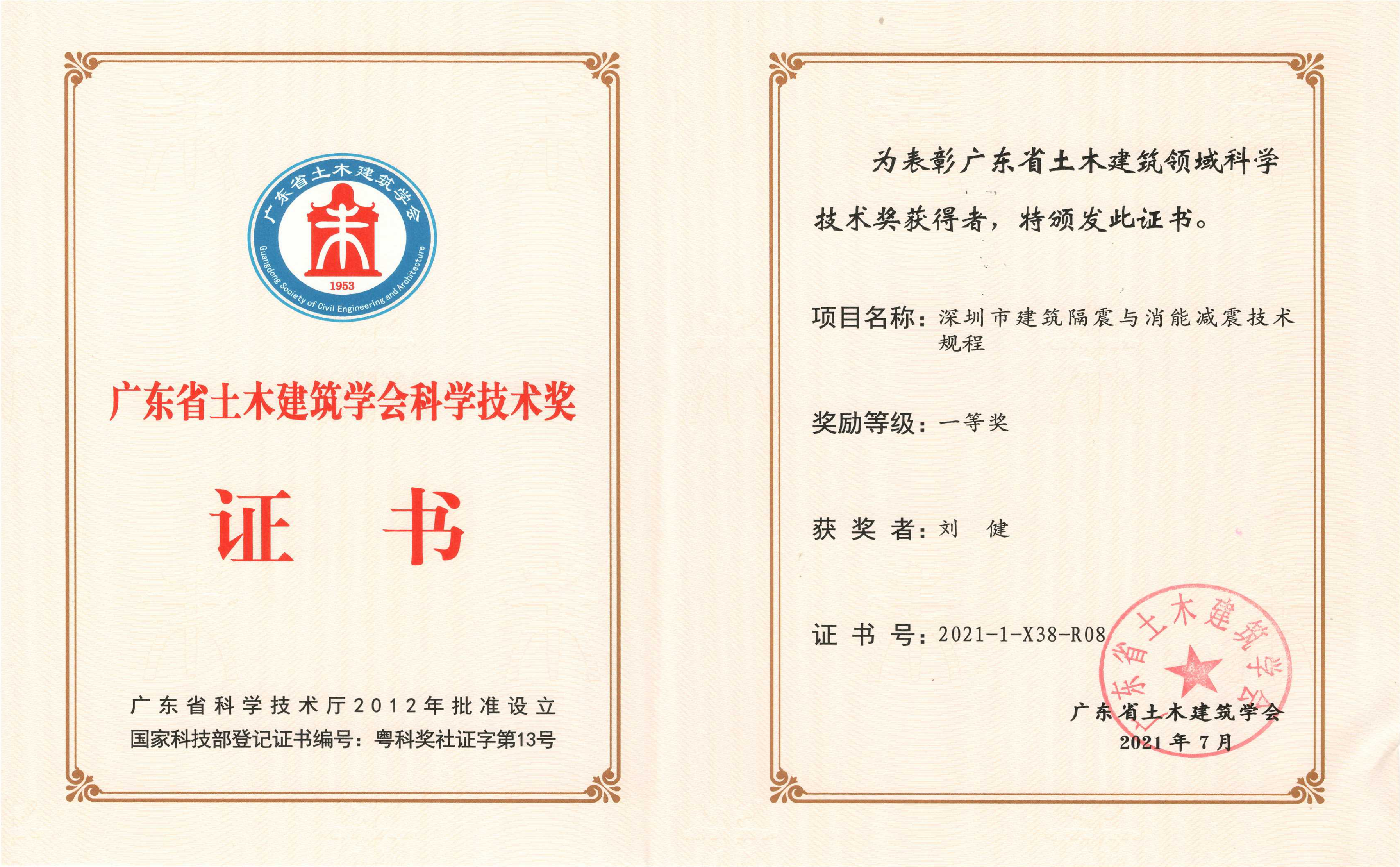 日前,广东省土木建筑学会公布了“2021年(第九届)广东省土木建筑学会科学技术奖获奖”获奖项目名单,经评审委员会评审及奖励委员会审定,中国建研院深圳分米乐官方版·(中国)官方网站参编的《深圳市建筑隔振与消能减震技术规程》项目荣获广东省土木建筑学会科学技术奖一等奖!总工程师刘健作为参编人员,全程参与了该技术规程的编制工作,对本规程的章节架构,编写内容、技术指标的确定均有一定的贡献。