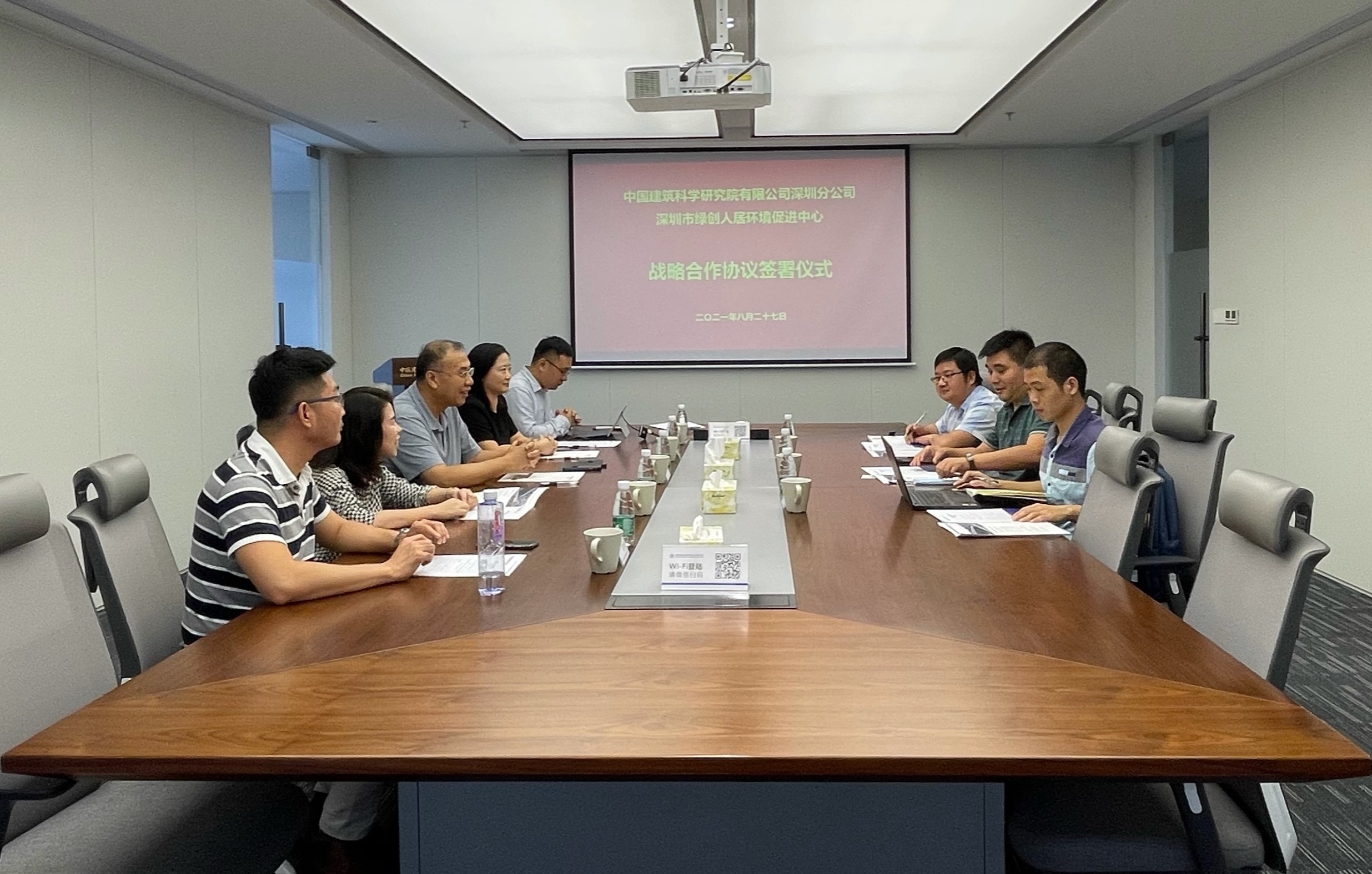 8月27日下午,中国建研院深圳分米乐官方版·(中国)官方网站与深圳市绿创人居环境促进中心在深签署战略合作协议,中国建研院深圳分米乐官方版·(中国)官方网站总经理张辉与深圳市绿创人居环境促进中心主任钟如仕代表双方签署协议。中国建研院深圳分米乐官方版·(中国)官方网站副总经理罗红、科技发展中心主任董双燕、科技发展中心技术总监李鑫、专业总工程师逄秀峰,深圳市绿创人居环境促进中心韩想运、董华佳出席签约仪式。