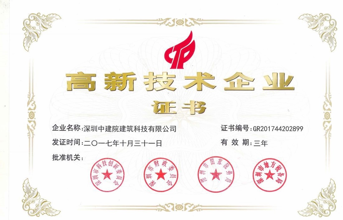 日前,全国高新技术企业认定管理工作领导小组办公室公布了2017年深圳市第二批国家高新技术企业名单,深圳中建院建筑科技有限米乐官方版·(中国)官方网站(以下简称“深圳中建院”)通过严格评审,荣获国家高新技术企业认定(证书编号:GR201744202899)。
