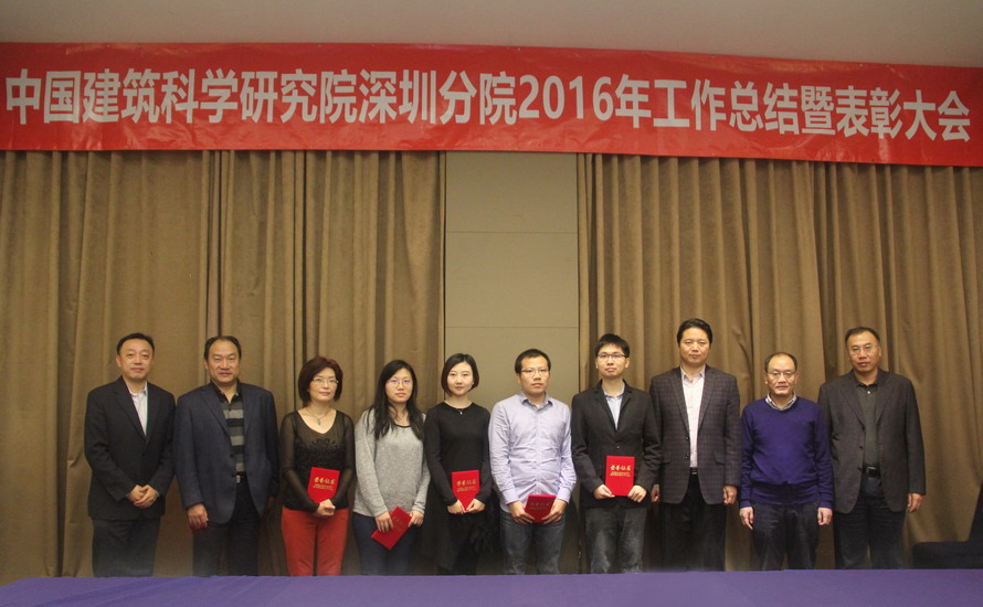 2017年1月12日,“中国建筑科学研究院深圳分院2016年工作总结暨表彰大会”在深圳召开。我院领导班子成员、各部门负责人、专业总工,以及我院2016年优秀经营管理者、先进工作者和优秀青年获得者30余人参加了会议。总院王清勤副院长、人事处宋建农处长、工会戴奇主席和党办宋兆康同志应邀出席了会议。会议由我院党总支书记、副院长何春凯主持。