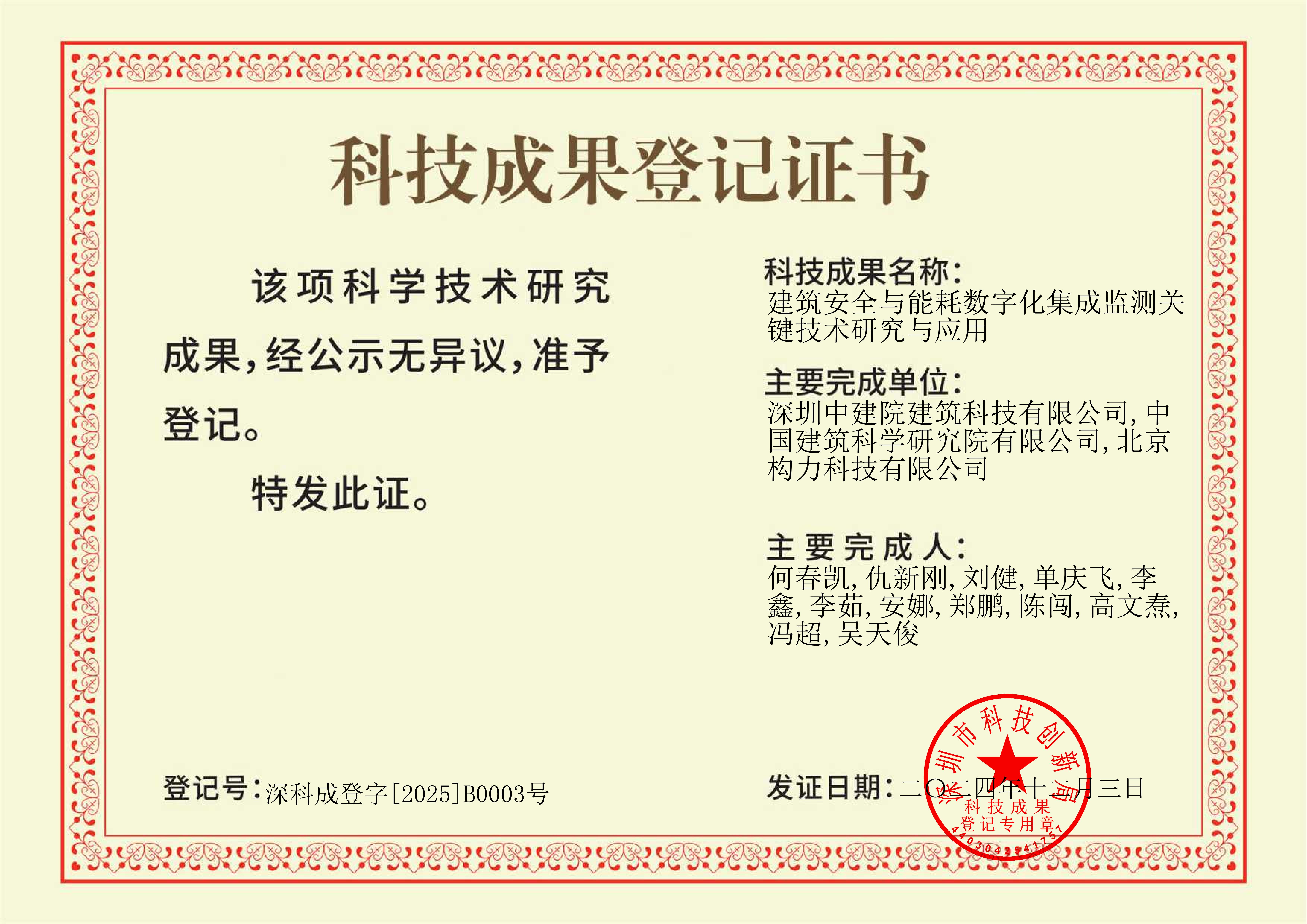 2025年1月20日,国家建筑工程技术研究中心发布15项创新成果,中国建研院深圳分米乐官方版·(中国)官方网站并国家建筑工程技术研究中心湾区研究院(以下简称“湾区研究院”)的科技成果“建筑安全与能耗数字化集成监测关键技术”成功入选。