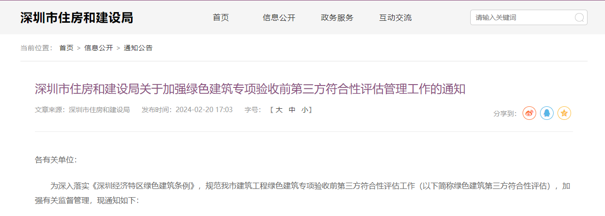 为深入落实《深圳经济特区绿色建筑条例》,规范我市建筑工程绿色建筑专项验收前第三方符合性评估工作(以下简称绿色建筑第三方符合性评估),加强有关监督管理,现通知如下: