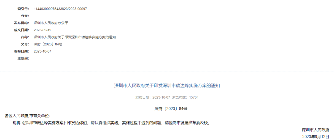 深圳市碳达峰实施方案