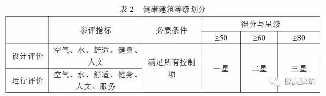第3.2.8条规定了健康建筑的等级划分。为使健康建筑的健康性能更为直观的表现出来,《标准》对健康建筑的健康性能进行了等级划分,详见表2。