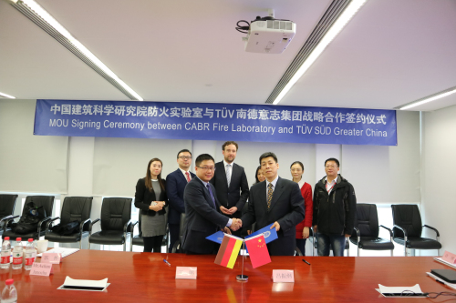 11月18日,TÜV南德意志集团(以下简称“TÜV SÜD”)为我院防火实验室颁发了外部电梯层门防火测试认可合作实验室授牌,并签署了战略合作协议。